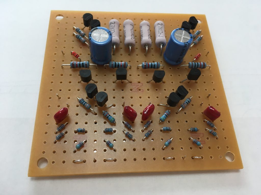 2.CR類やFET、トランジスタをユニバーサル基板やラグ端子に取り付ける。